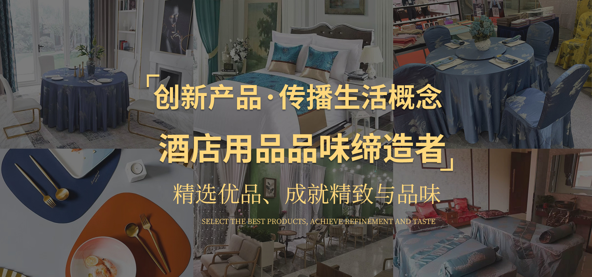 主打產(chǎn)品——臺布、椅子套、桌布、餐桌用品等一系列酒店專用